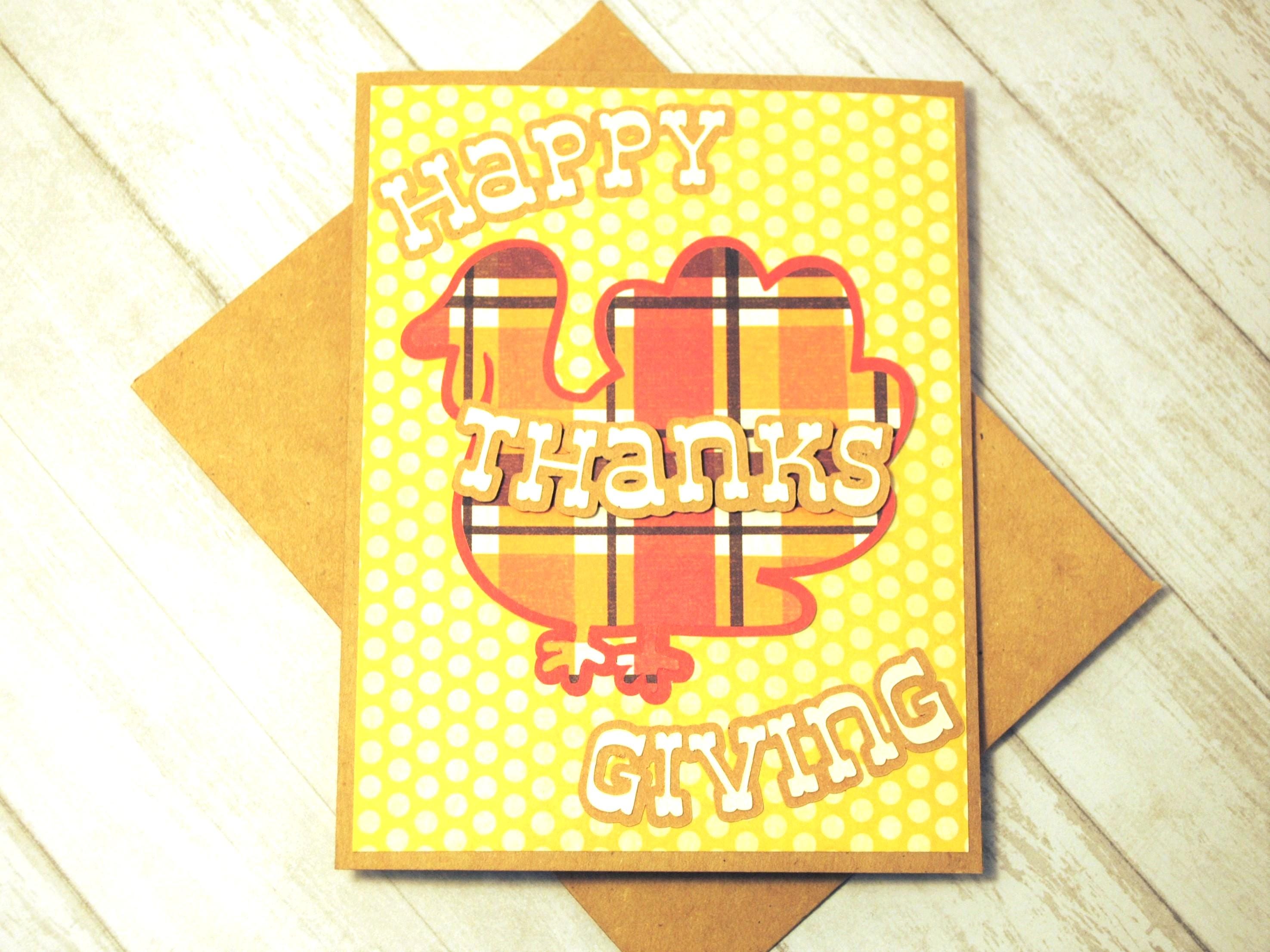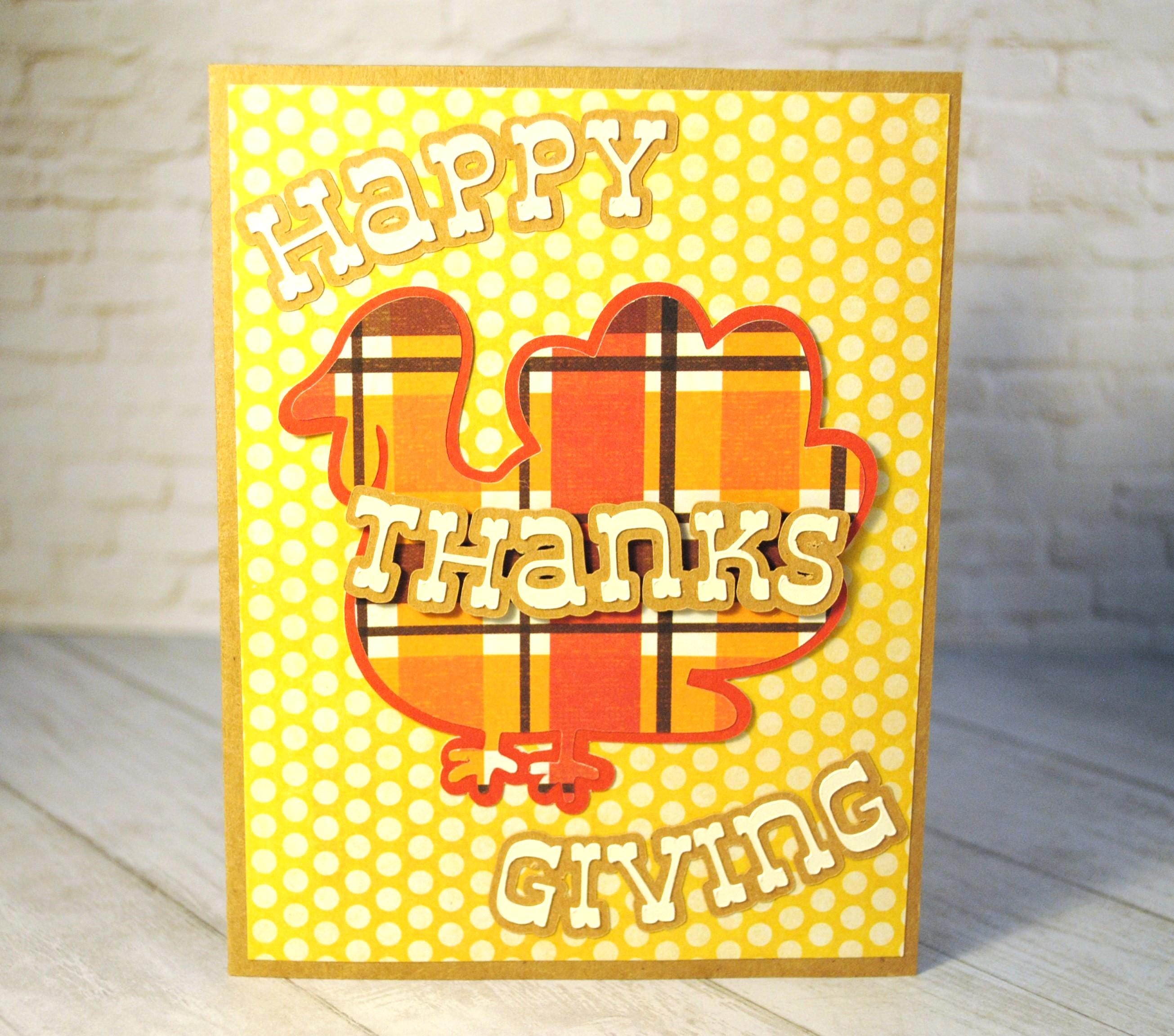 * cut out words "Happy" "Thanks" "Giving" layered in shimmery cream and kraft