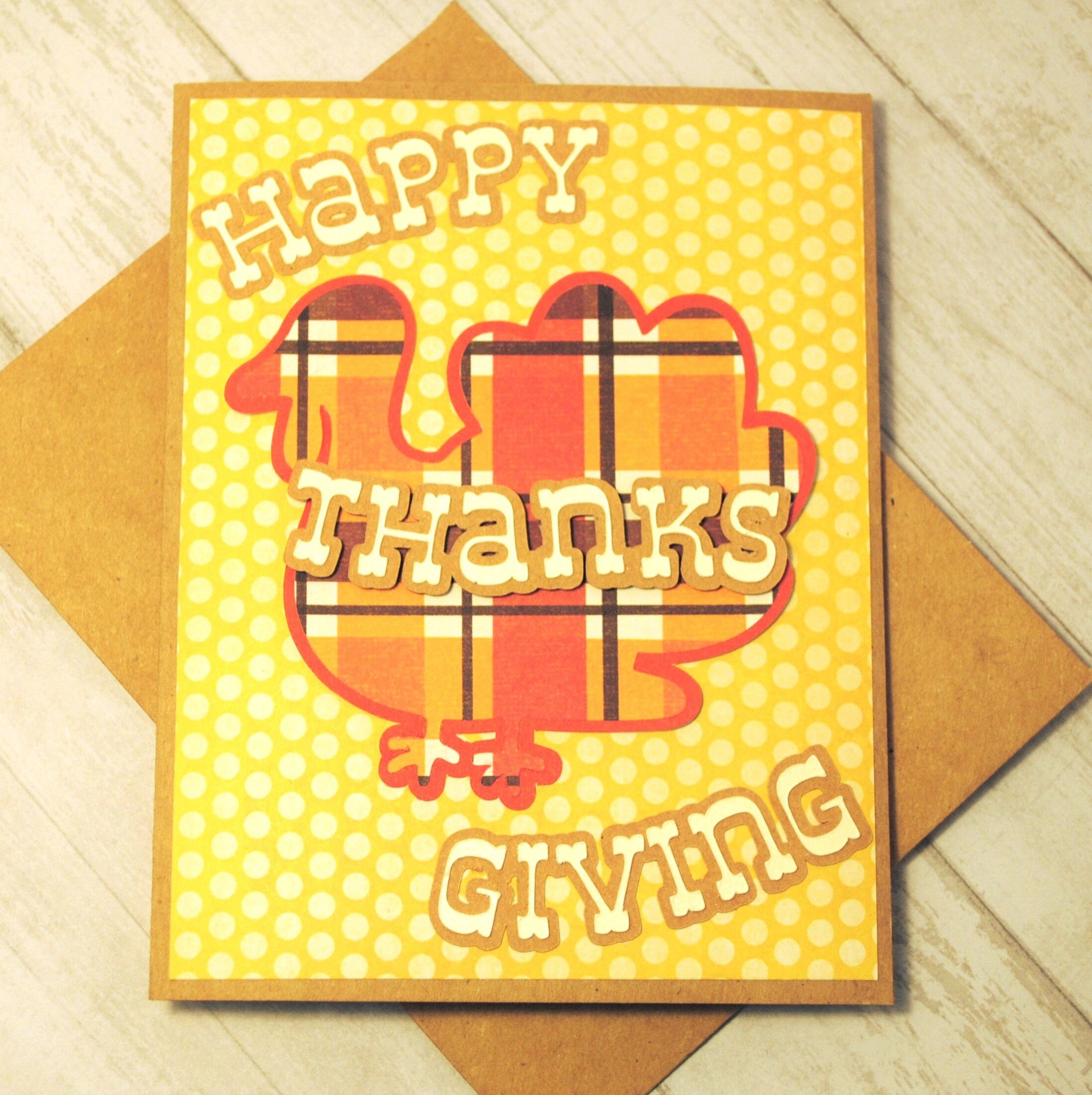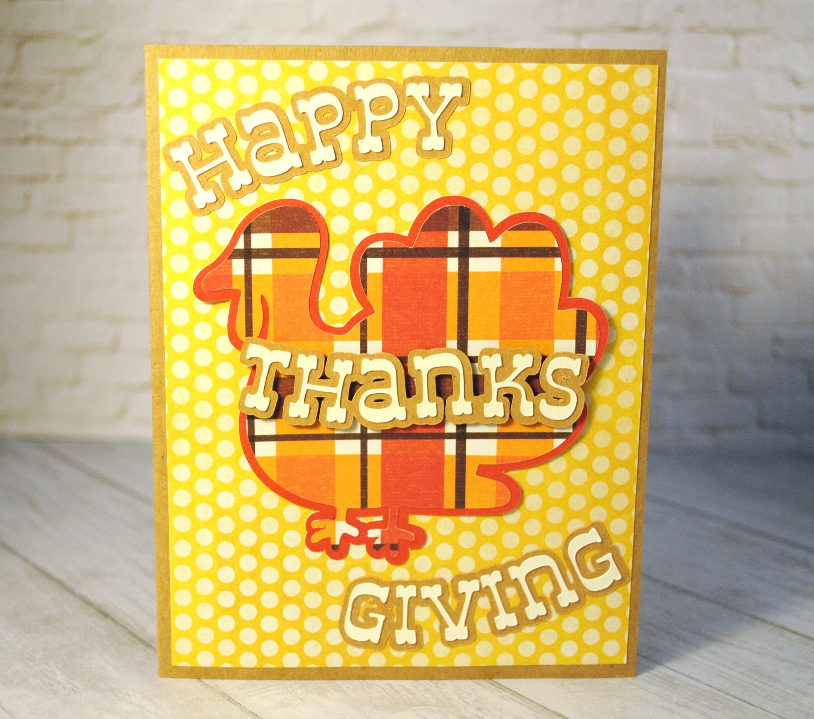 * cut out words "Happy" "Thanks" "Giving" layered in shimmery cream and kraft