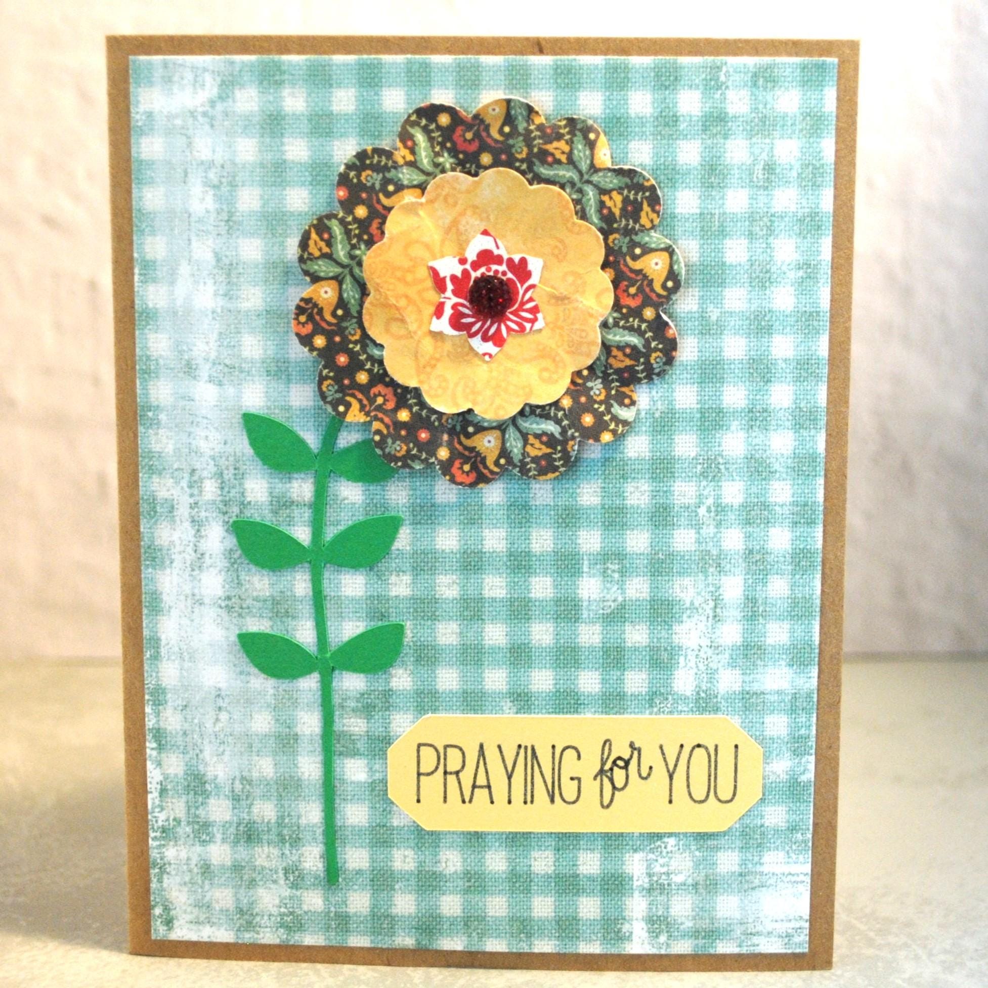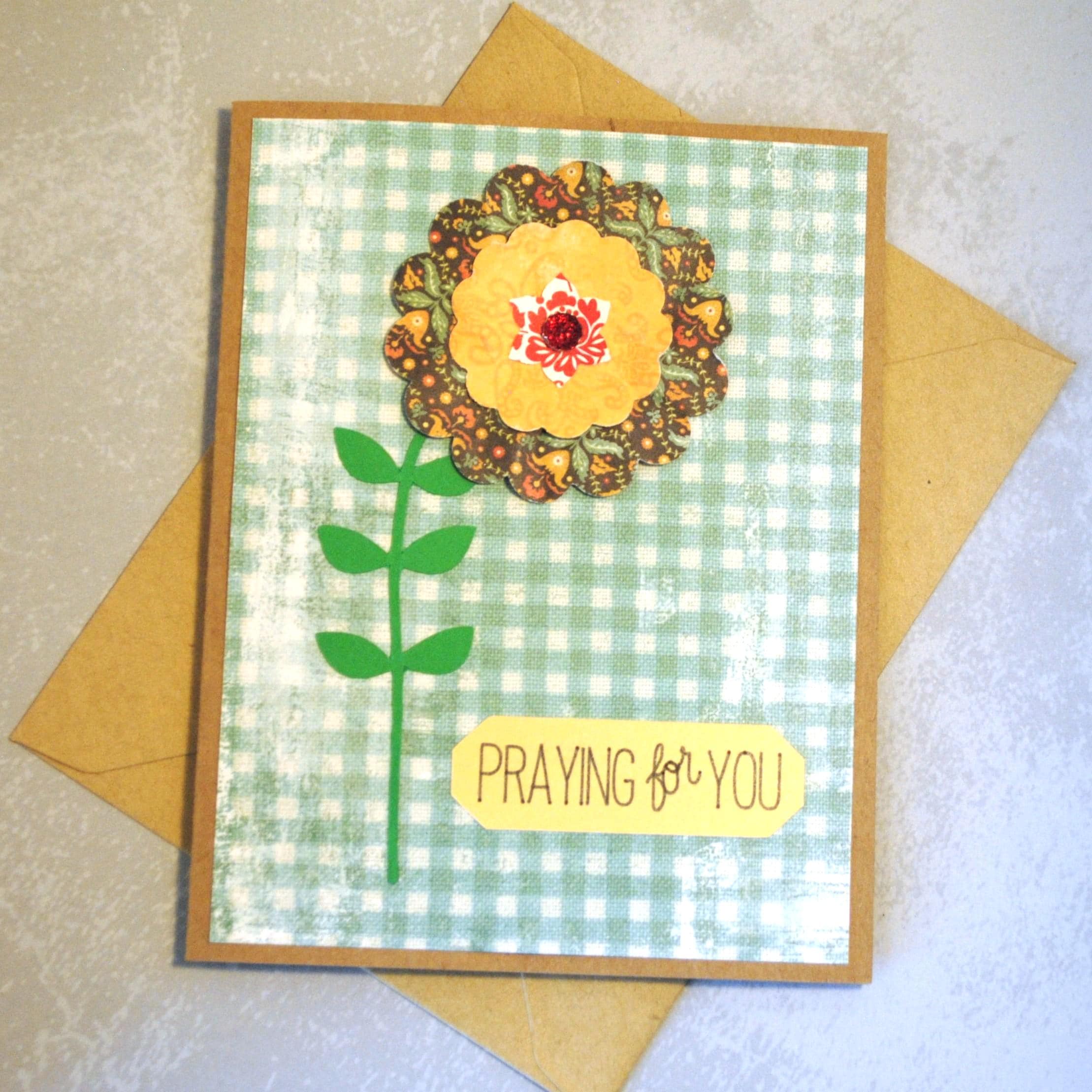 * A single flower made from layers of orange & brown patterned cardstock, red small star shaped center with a red sparkly gemstone center