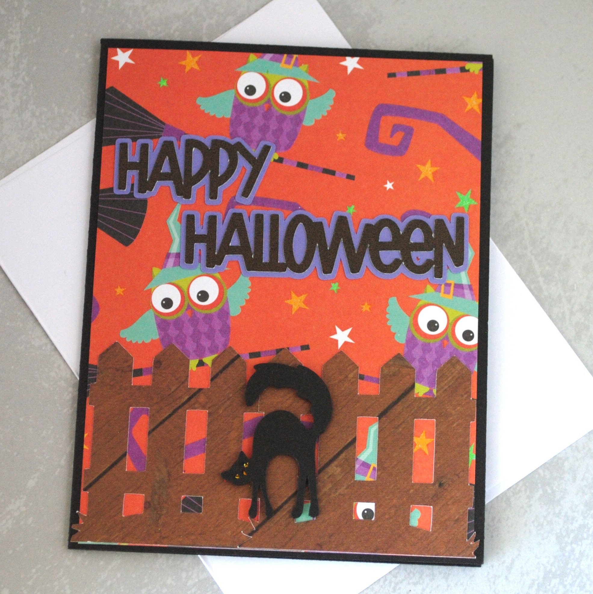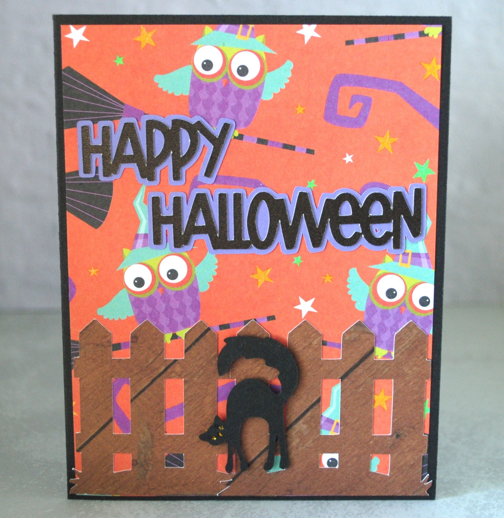 * shimmery black cardstock cut out of "Happy Halloween" with a layered purple outline