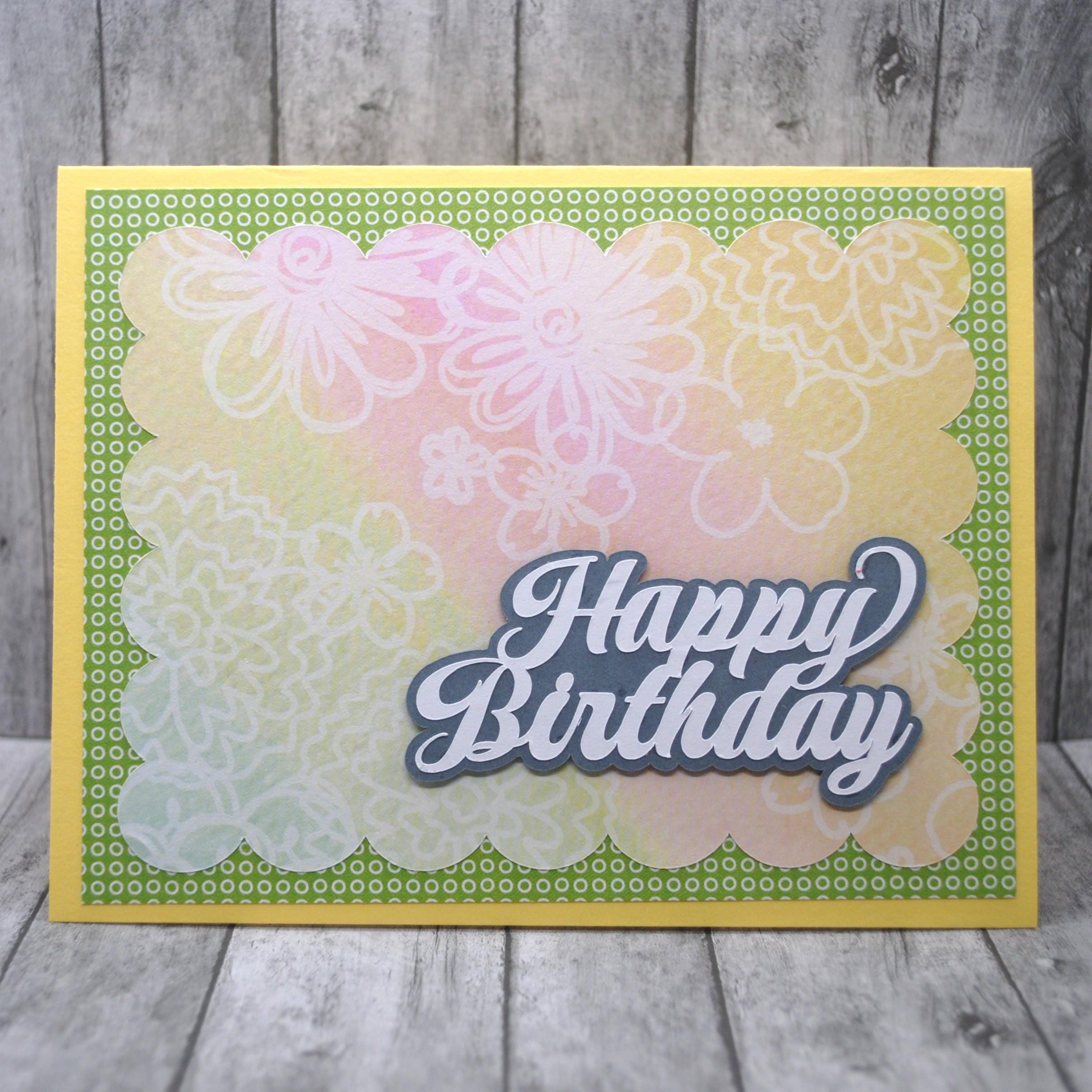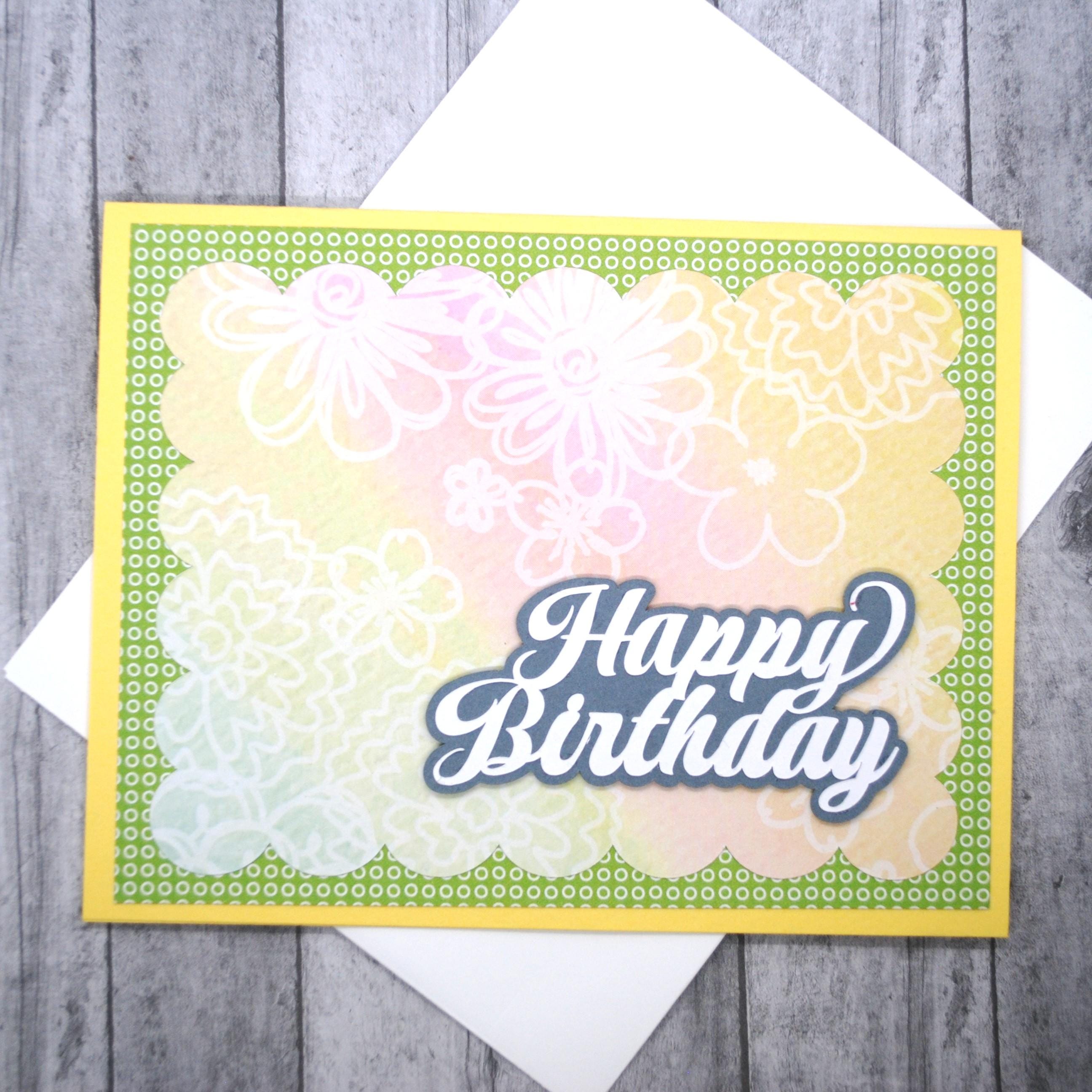 * Raised cutout letters saying "Happy Birthday" in white and gray cardstock